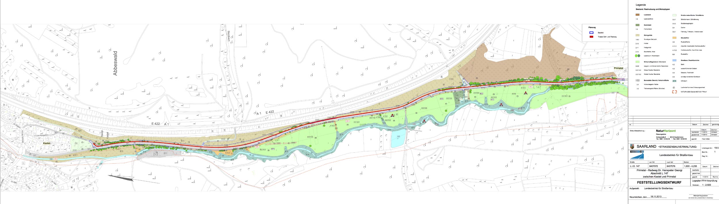 Projekt: FFH-Vorprüfung und Variantenprüfung für L 147 Kastel-Primstal / Geh- und Radweg