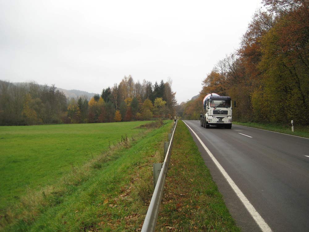 Stark befahrene Landstraße L 127, vor allem auch mit LKW, was zu einer erheblichen Gefährdung der Radfahrer führt
