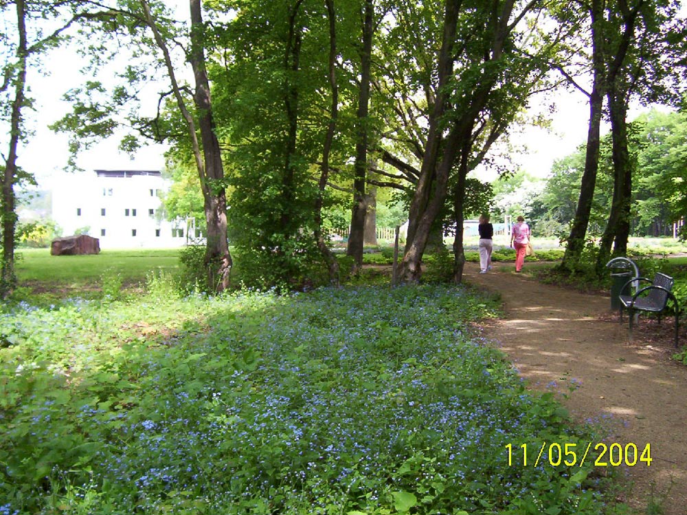 Ein bisher völlig verwildertes und teilweise als Standort für Müllentsorgung genutztes Grundstück in Randlage zwischen Klinikgelände und einem Wohngebiet wird von der Klinik gekauft. Unsere Aufgabe bestand darin, dieses Gelände mit zum Teil altem Baumbestand als einen neuen Bestandteil der weiträumigen Aussenanlagen der Klinik zu entwickeln.