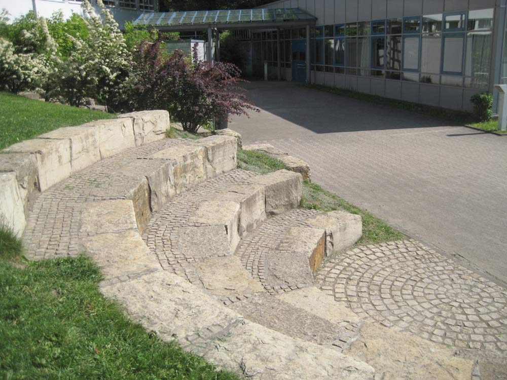 Kennzeichen: Das Projekt geht auf eine Initiative des Fördervereins der Schule zurück. Planung eines Atriums mit Sitzstufen in einem den Schulhof begrenzenden Hang.