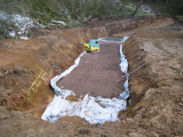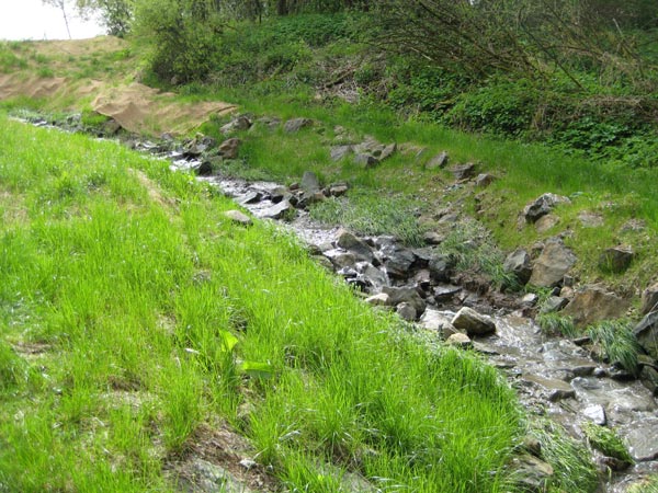 Im Rahmen der Planung der Einleitstellen hatte der EVS zum ersten Mal die vonuns vorgeschlagenen Steinmatratzen zur Auslaufsicherung in der Übergangszone zum Bachlauf genehmigt.