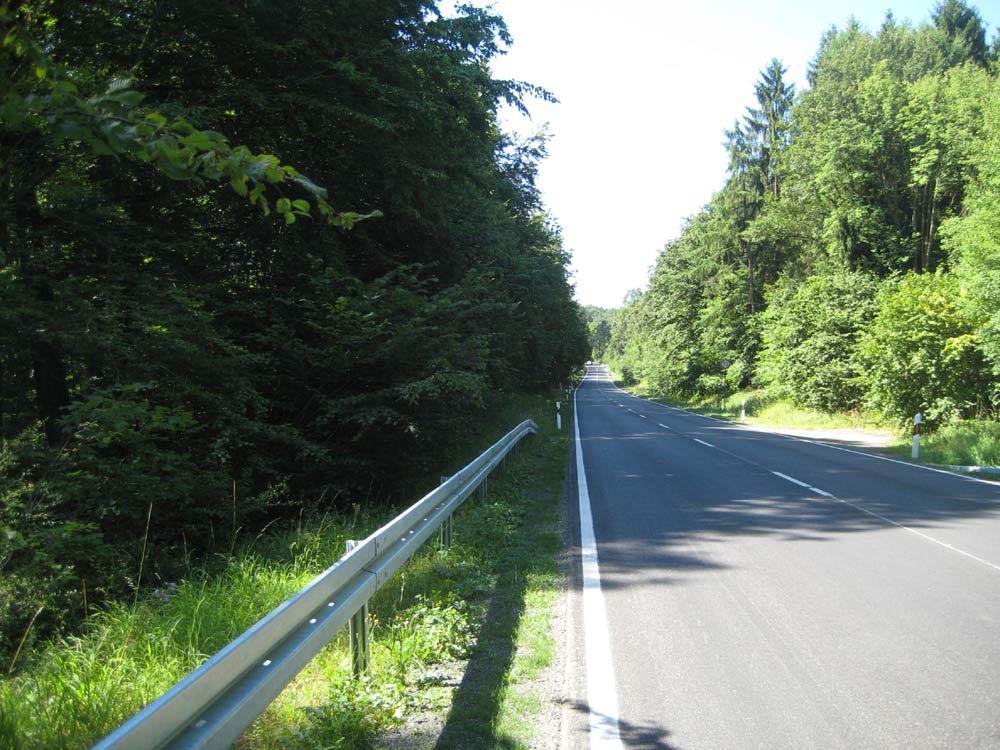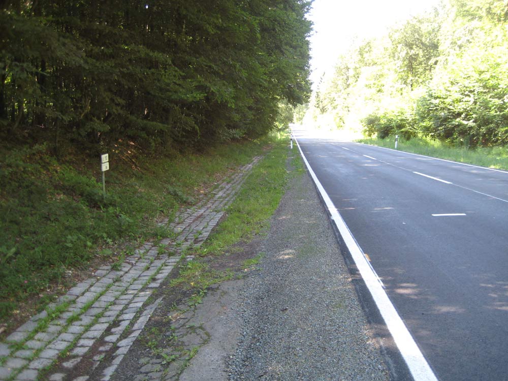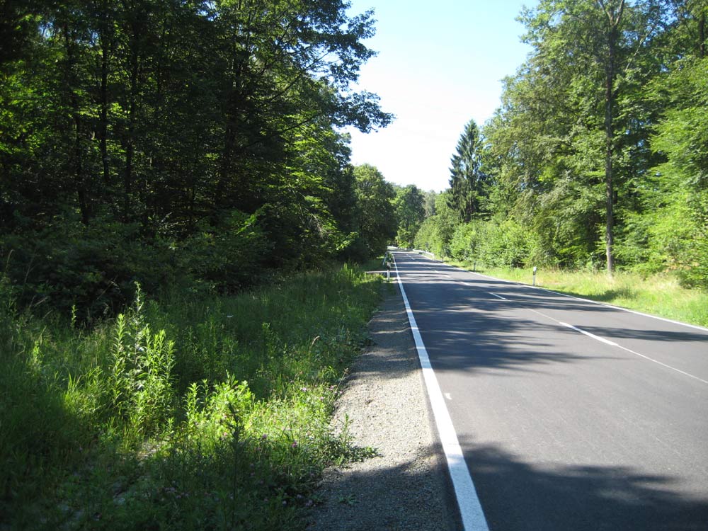 Kennzeichen: Neubau eines Radweges entlang einer Landstraße (Lückenschluß), beidseits Wald