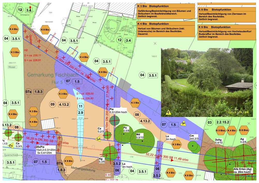Kennzeichen: Bachnahe Grundstücke, großer Erlenbestand, Parallel zum Planungsprojekt verlaufende Gasleitungen der Steag und von Creos