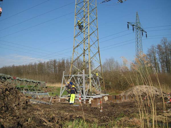- Austausch von Hochspannungsmasten in Naturschutzgebieten, die gleichzeitig FFH- und Vogelschutzgebiete sind, stellenweise nach §30 BNatSchG geschützte Biotope (Röhricht bestandene Feuchtflächen).